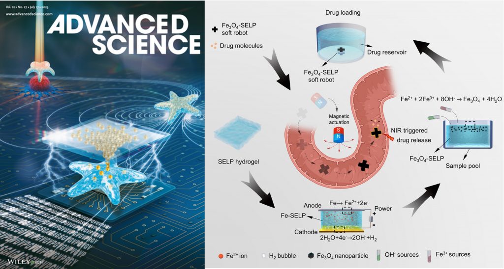 - Electrochemical-Genetic Programming of Protein-Based Magnetic Soft Robots for Active Drug Delivery, Advanced Science, 2025, 12(27), 2503404. https://doi.org/10.1002/advs.202503404